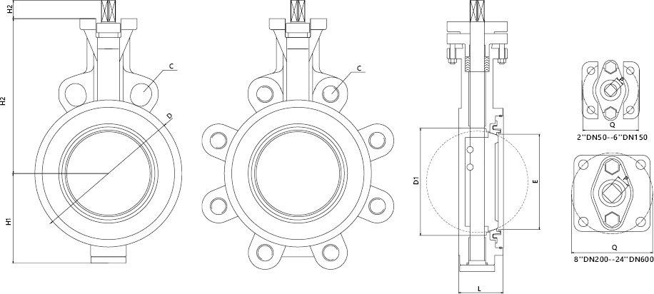 ANSI/FCI 70-2規(guī)定了控制閥的泄露等級(jí)和試驗(yàn)程序。其中VI級(jí)為最低泄露等級(jí)。高性能對(duì)夾式蝶閥能達(dá)到MSS-SP61規(guī)定的無(wú)氣泡密封,要高于VI級(jí)。